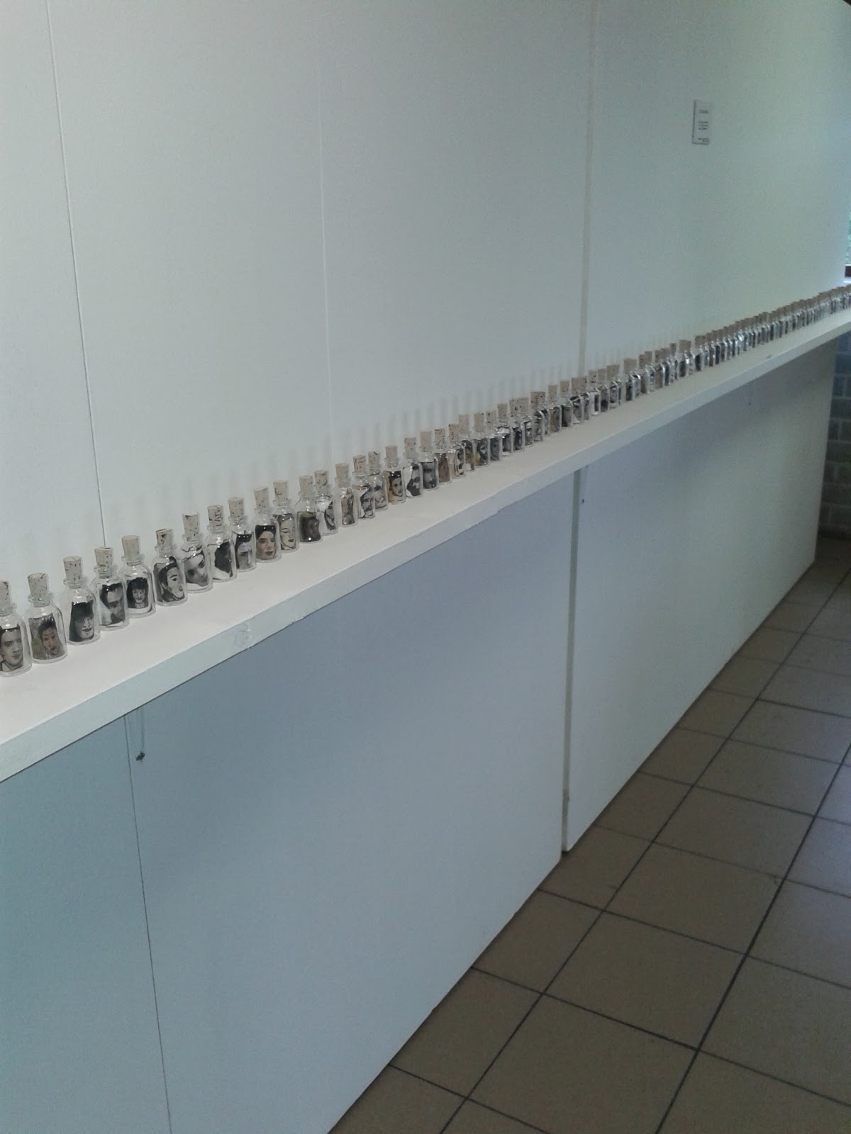 Dit waren flesjes op een rij met een bekend persoon er in. Geweldig.